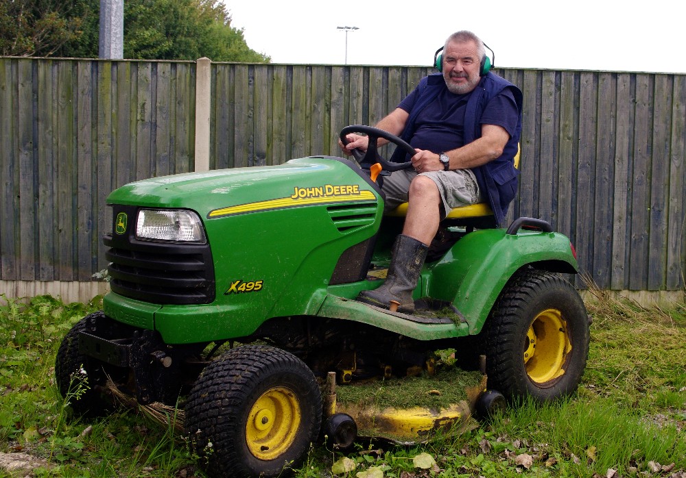 Match Secretary-treasurer Roy Winfield cutting the grass at the Crofton Community Centre
