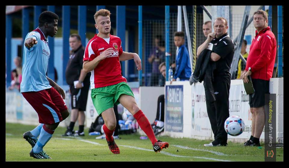 Billy Miller watches on during Harrogate Railway’s 3-2 defeat at Colwyn Bay. Photo: Caught Light Photography