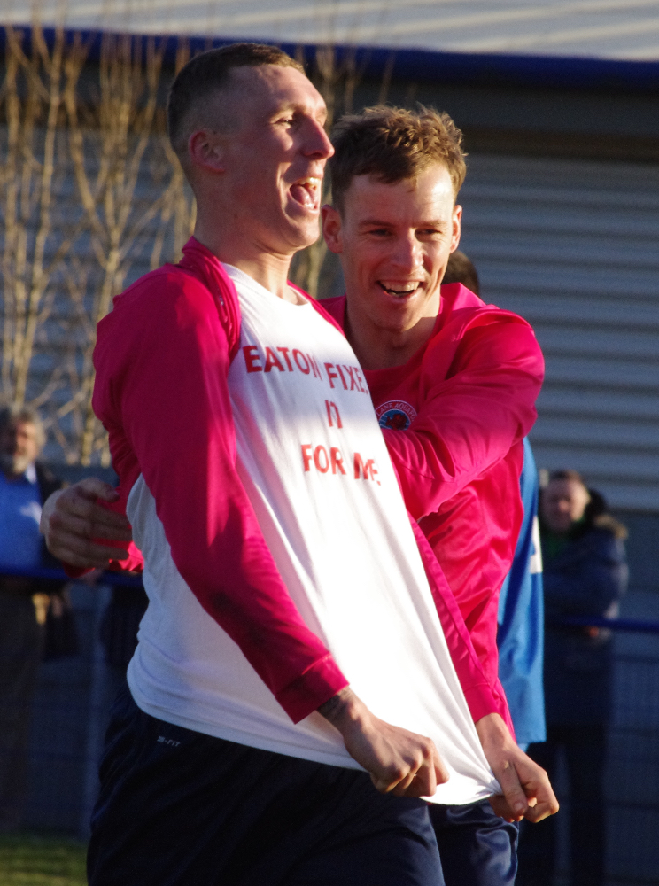 Pandemonium: Glossop celebrate Sam Hind’s equaliser
