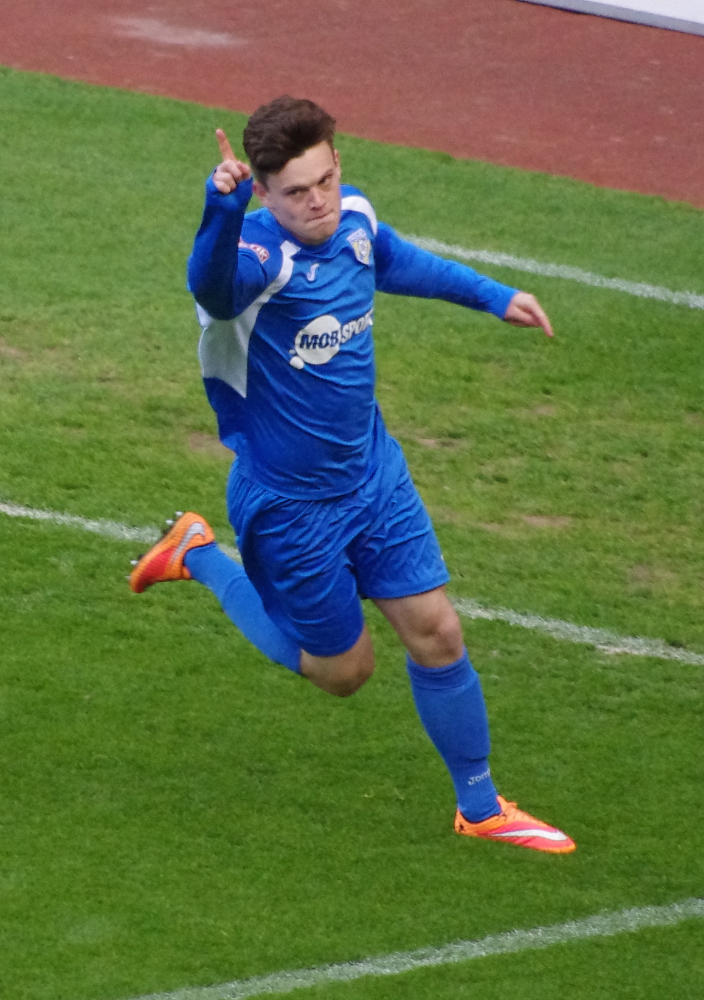 Reece Thompson wheels away after opening the scoring in the Sheffield & Hallamshire Senior Cup final