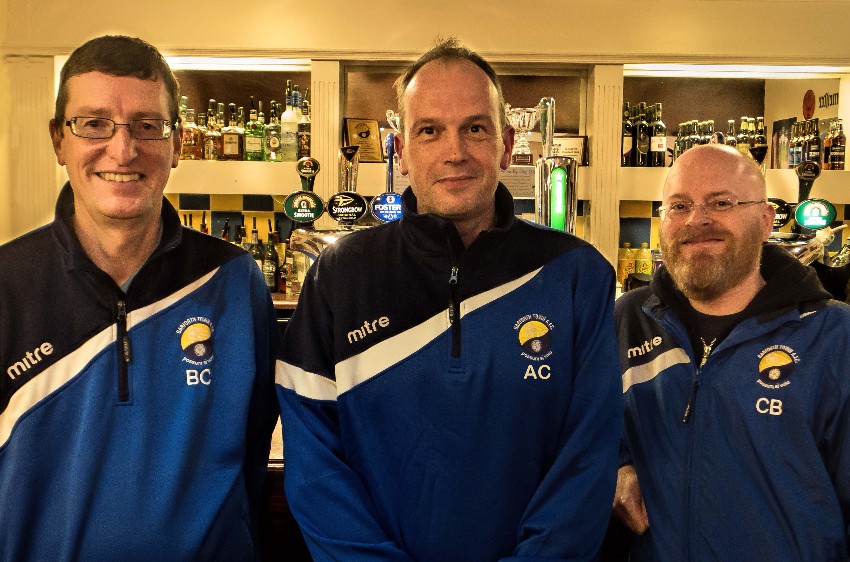 New Garforth Town manager Adrian Costello (centre). Picture: Chris Mather