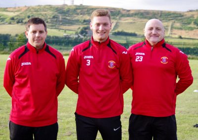 Chris Hilton with new signing Luke Mangham and Stocksbridge physio Shaun Handisides who is nursing the attacker back to full fitness