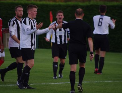 Some Penistone fans would say he was still disorientated after being winded by the ball early doors when he awarded the debatable penalty to Parkgate. Penalty or not, his application of the laws of the game by giving Olly Beaumont a yellow card for the handball was suspect.