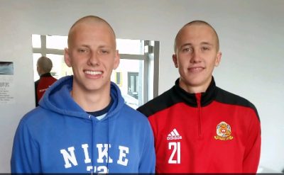 Calan was joined in the challenge by his best friend and Ossett Town’s Liam Owen (pictured with Calan below) who also shaved his head.