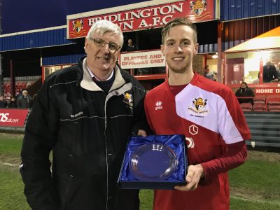 Bridlington Town chairman Peter Smurthwaite presenting Joel Sutton with his silver salver