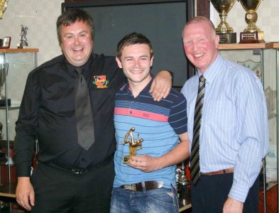 Poskitt with then-Pontefract chairman Guy Nottingham and then-manager Brendan Ormsby, the former Leeds United captain