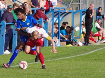 Olly Hotchkiss in battle with Garforth’s Dan Williams