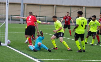Campion goalkeeper Liam Lovell came racing out of his goal and mis-judged the long ball.