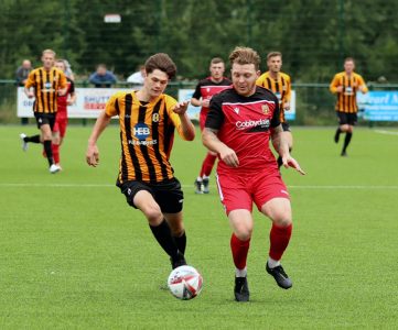 Frankie Sinfield, who also set the first goal up, crossed for Waddington to double the Dennyboys’ tally.