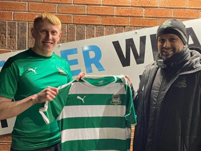Farsley Celtic manager Neil Ross welcomes Ethen Vaughan to the club