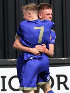 Marcus Day celebrates with Joe Crosby. Picture: Craig Dinsdale