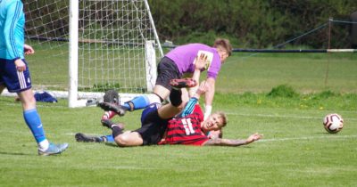 Young starlet Calan Rollinson’s magnificent cross from the left was met the leaping salmon figure of Sam Severn whose header hit the post.